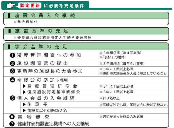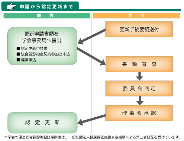 本学会では、原則3年ごと(※)に、「優良総合健診施設」として適格かどうかを審査し、認定更新を行っています。